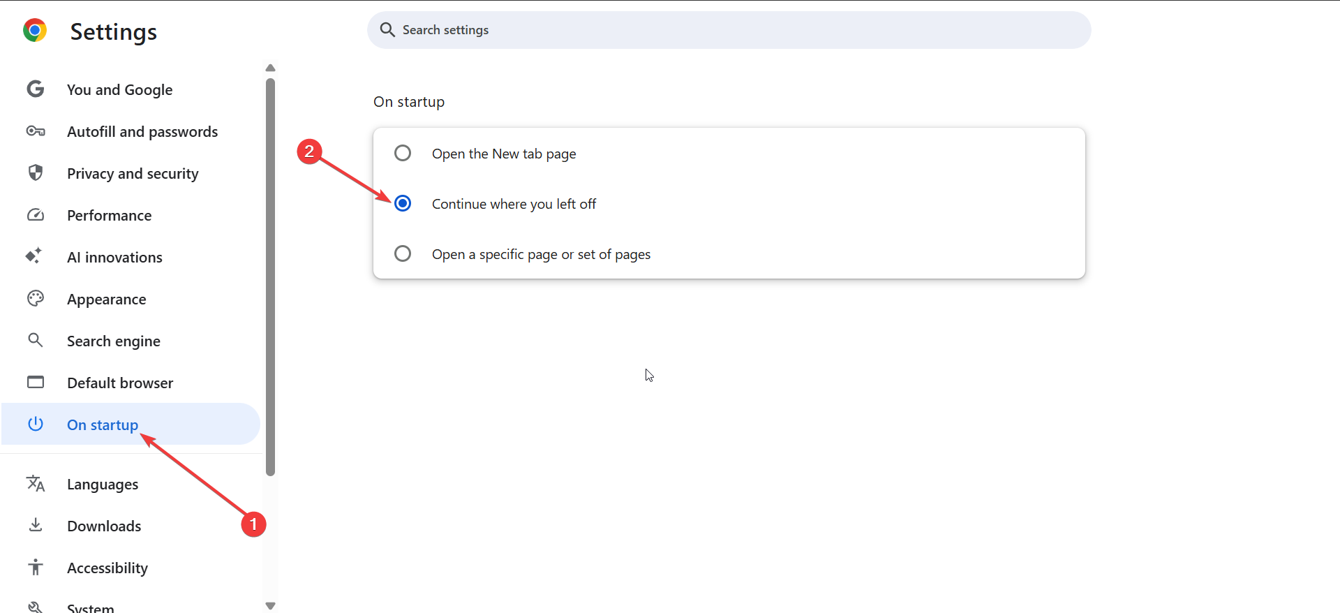 Click the three vertical dots in the top right corner and select Settings to access the Chrome Settings. Next, click on On startup in the left pane and select Continue where you left off. Finally, restart Chrome to confirm that tabs restore correctly.