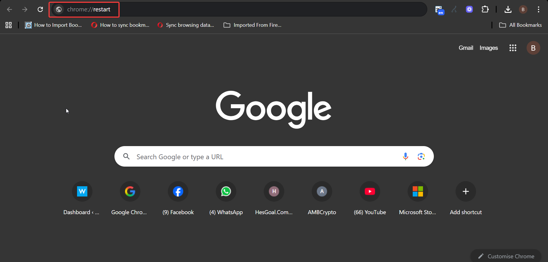 chrome://restartfor an instant restart. - Save a restart bookmark for quick access.
